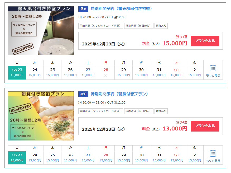 2025年12月23日~2026年1月4日までのご予約につきましては、